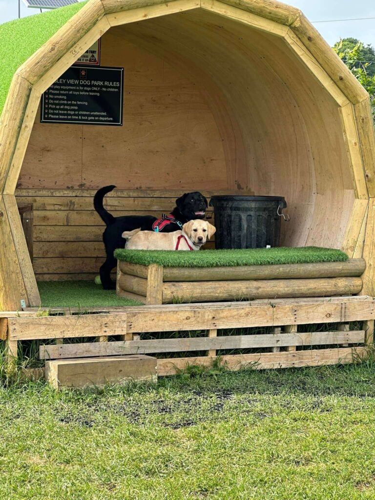 Such a great set up! Our boys, Buddy and Toby and their friend, Tilly, loved the agility equipment on offer. Plenty of space for them to run free in secure surroundings – and a very handy shelter for rainy days. The owners have thought of everything – toys, water, poo bags……….absolutely brilliant. We have just booked for our 2nd visit!