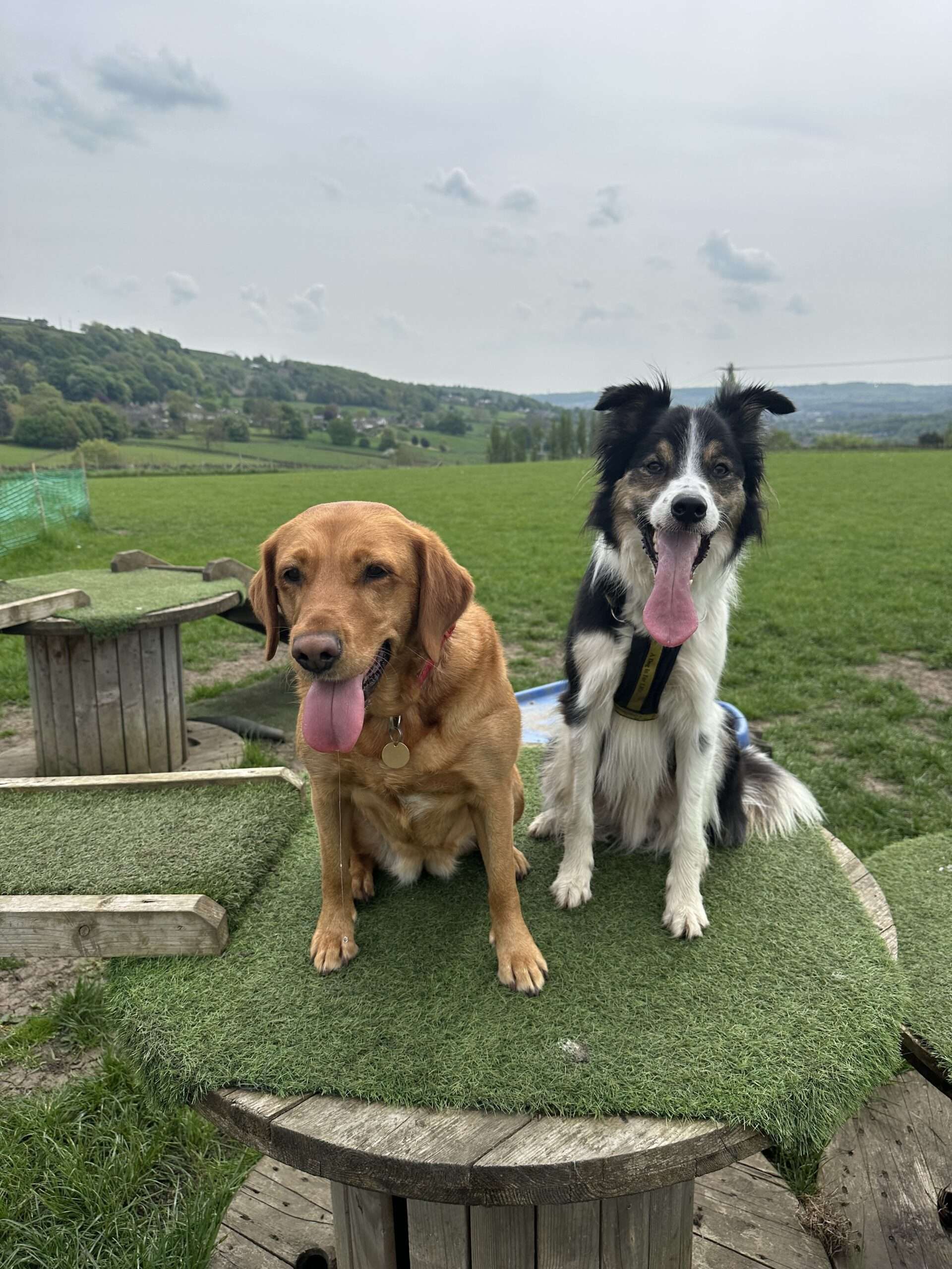 Excellent facilities, lovely location. 😍 Two very tired doggies after running around the equipment